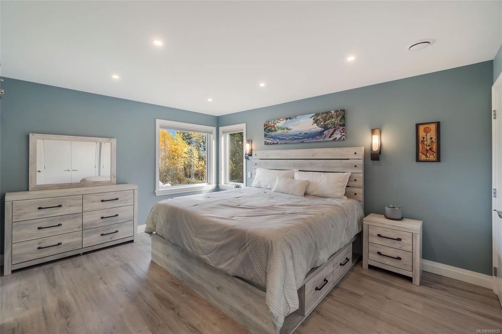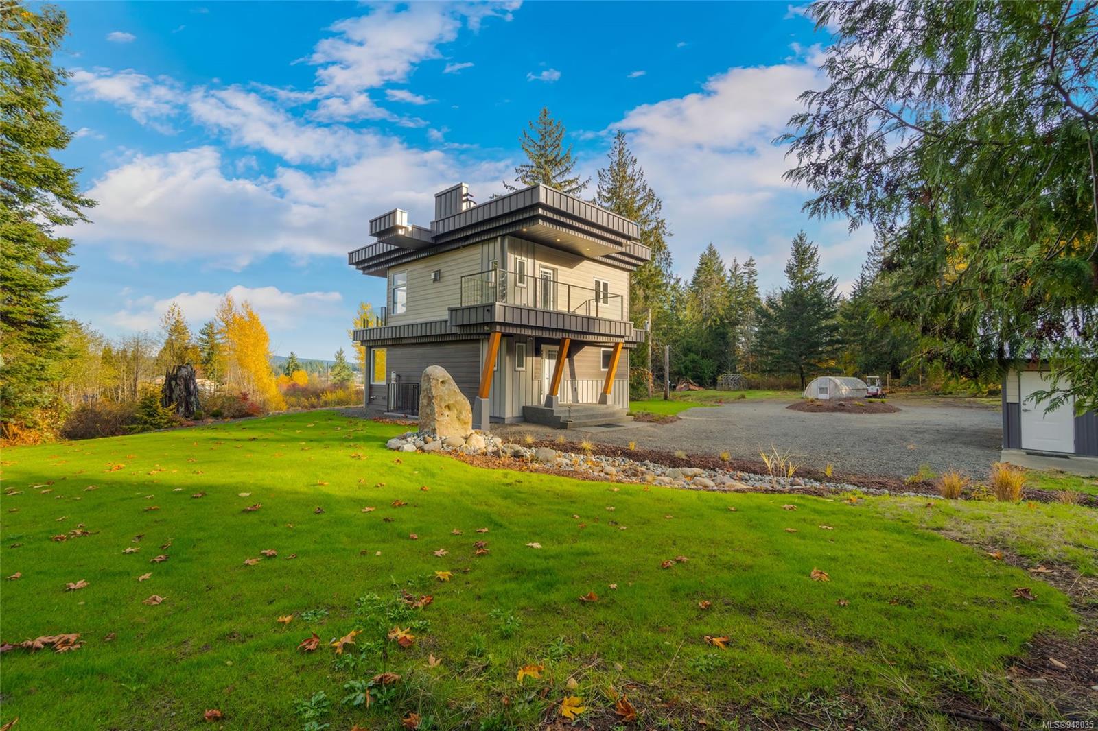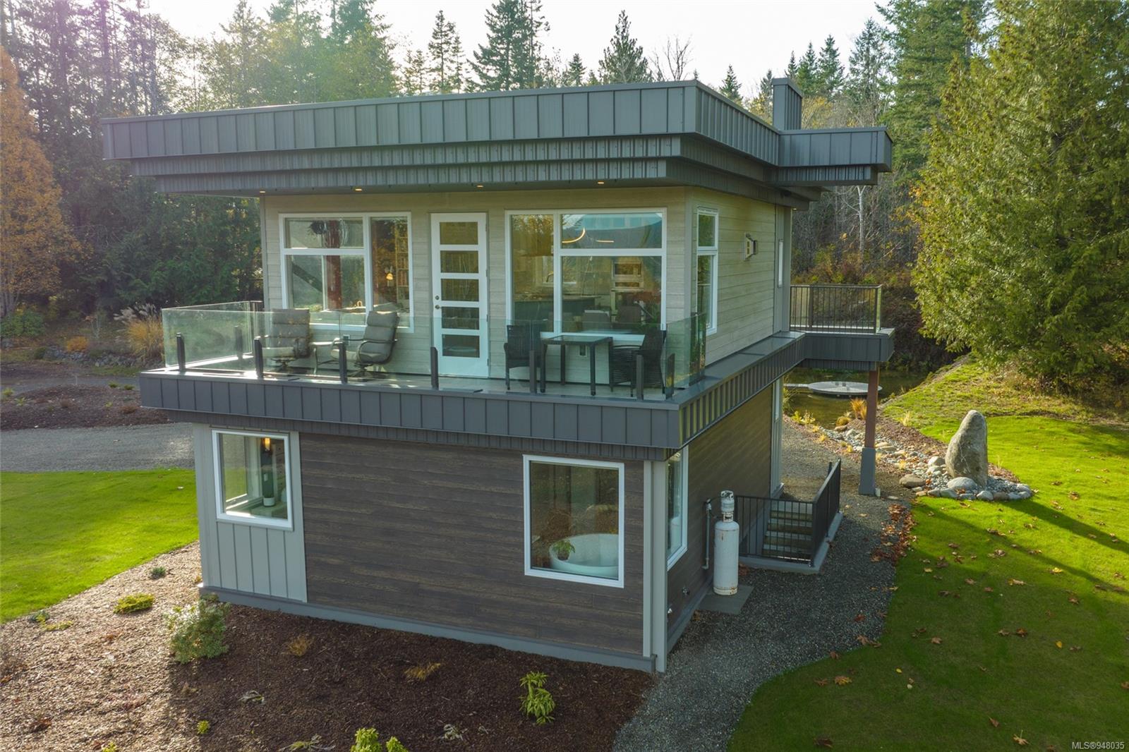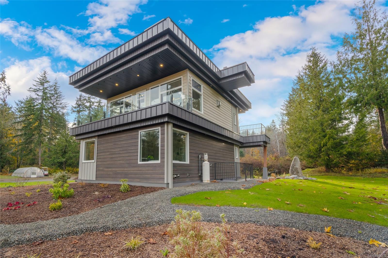 *OCEANVIEW* This beautiful Fanny Bay home is situated on a private 5.06 partially forested acre lot. Newly built in 2020, this home does not disappoint. Features include a detached two car garage, a pond with natural waterfalls. For the garden enthusiasts there are 2 greenhouses and a 6.5 ft deer fence around most of the property with an automatic gate to enter. The lower floor offers 2 bedrooms & a spa like bathroom. Quartz countertops and radiant floor heating. Make your way upstairs to an open floor plan living/kitchen/dining room, leading out to one of two decks this fully covered deck is perfect to watch the morning sunrise, but in the heat of the day there are misters in the soffits! Downstairs in this home is the basement with 6' ceilings includes media room & cold storage/wine cellar/pantry. This property also rents out .6 of an acre which currently has a tiny home on (tenant owns) which brings in $1500.00 per month to help with mortgage. Ask Realtor for detailed feature list!